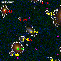 Black segments are analyzed here. Roll mouse over color images to view segments. Best viewed in a wide browser window (1200 pixels or more). Download SED & P(z) plots to view larger versions.