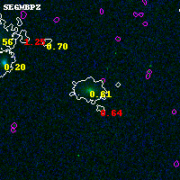 Black segments are analyzed here. Roll mouse over color images to view segments. Best viewed in a wide browser window (1200 pixels or more). Download SED & P(z) plots to view larger versions.