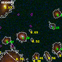 Black segments are analyzed here. Roll mouse over color images to view segments. Best viewed in a wide browser window (1200 pixels or more). Download SED & P(z) plots to view larger versions.