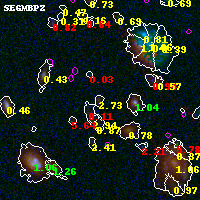 Black segments are analyzed here. Roll mouse over color images to view segments. Best viewed in a wide browser window (1200 pixels or more). Download SED & P(z) plots to view larger versions.