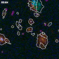 Black segments are analyzed here. Roll mouse over color images to view segments. Best viewed in a wide browser window (1200 pixels or more). Download SED & P(z) plots to view larger versions.
