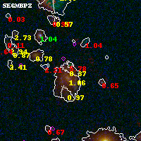 Black segments are analyzed here. Roll mouse over color images to view segments. Best viewed in a wide browser window (1200 pixels or more). Download SED & P(z) plots to view larger versions.
