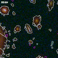 Black segments are analyzed here. Roll mouse over color images to view segments. Best viewed in a wide browser window (1200 pixels or more). Download SED & P(z) plots to view larger versions.