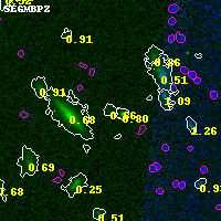 Black segments are analyzed here. Roll mouse over color images to view segments. Best viewed in a wide browser window (1200 pixels or more). Download SED & P(z) plots to view larger versions.