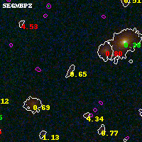 Black segments are analyzed here. Roll mouse over color images to view segments. Best viewed in a wide browser window (1200 pixels or more). Download SED & P(z) plots to view larger versions.