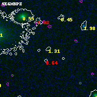 Black segments are analyzed here. Roll mouse over color images to view segments. Best viewed in a wide browser window (1200 pixels or more). Download SED & P(z) plots to view larger versions.