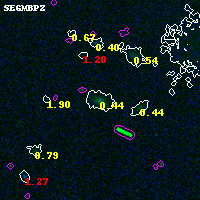 Black segments are analyzed here. Roll mouse over color images to view segments. Best viewed in a wide browser window (1200 pixels or more). Download SED & P(z) plots to view larger versions.
