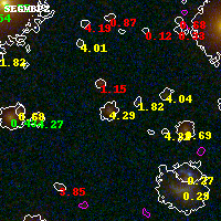Black segments are analyzed here. Roll mouse over color images to view segments. Best viewed in a wide browser window (1200 pixels or more). Download SED & P(z) plots to view larger versions.