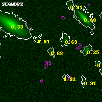 Black segments are analyzed here. Roll mouse over color images to view segments. Best viewed in a wide browser window (1200 pixels or more). Download SED & P(z) plots to view larger versions.
