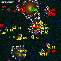 Black segments are analyzed here. Roll mouse over color images to view segments. Best viewed in a wide browser window (1200 pixels or more). Download SED & P(z) plots to view larger versions.
