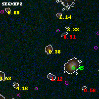 Black segments are analyzed here. Roll mouse over color images to view segments. Best viewed in a wide browser window (1200 pixels or more). Download SED & P(z) plots to view larger versions.