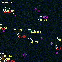 Black segments are analyzed here. Roll mouse over color images to view segments. Best viewed in a wide browser window (1200 pixels or more). Download SED & P(z) plots to view larger versions.
