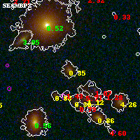 Black segments are analyzed here. Roll mouse over color images to view segments. Best viewed in a wide browser window (1200 pixels or more). Download SED & P(z) plots to view larger versions.