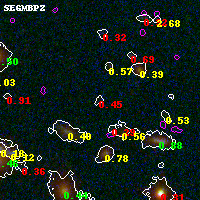 Black segments are analyzed here. Roll mouse over color images to view segments. Best viewed in a wide browser window (1200 pixels or more). Download SED & P(z) plots to view larger versions.