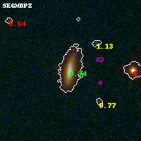 Black segments are analyzed here. Roll mouse over color images to view segments. Best viewed in a wide browser window (1200 pixels or more). Download SED & P(z) plots to view larger versions.