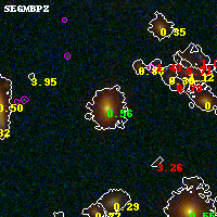 Black segments are analyzed here. Roll mouse over color images to view segments. Best viewed in a wide browser window (1200 pixels or more). Download SED & P(z) plots to view larger versions.