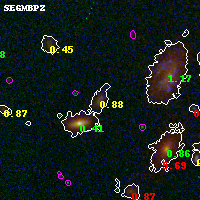 Black segments are analyzed here. Roll mouse over color images to view segments. Best viewed in a wide browser window (1200 pixels or more). Download SED & P(z) plots to view larger versions.