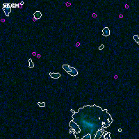 Black segments are analyzed here. Roll mouse over color images to view segments. Best viewed in a wide browser window (1200 pixels or more). Download SED & P(z) plots to view larger versions.