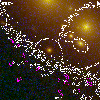 Black segments are analyzed here. Roll mouse over color images to view segments. Best viewed in a wide browser window (1200 pixels or more). Download SED & P(z) plots to view larger versions.