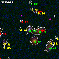 Black segments are analyzed here. Roll mouse over color images to view segments. Best viewed in a wide browser window (1200 pixels or more). Download SED & P(z) plots to view larger versions.