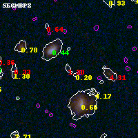 Black segments are analyzed here. Roll mouse over color images to view segments. Best viewed in a wide browser window (1200 pixels or more). Download SED & P(z) plots to view larger versions.