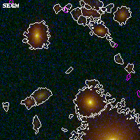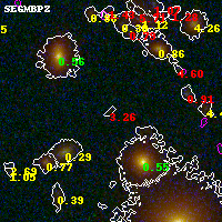Black segments are analyzed here. Roll mouse over color images to view segments. Best viewed in a wide browser window (1200 pixels or more). Download SED & P(z) plots to view larger versions.