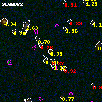 Black segments are analyzed here. Roll mouse over color images to view segments. Best viewed in a wide browser window (1200 pixels or more). Download SED & P(z) plots to view larger versions.