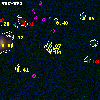 Black segments are analyzed here. Roll mouse over color images to view segments. Best viewed in a wide browser window (1200 pixels or more). Download SED & P(z) plots to view larger versions.