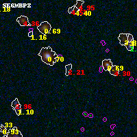 Black segments are analyzed here. Roll mouse over color images to view segments. Best viewed in a wide browser window (1200 pixels or more). Download SED & P(z) plots to view larger versions.
