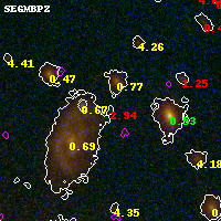 Black segments are analyzed here. Roll mouse over color images to view segments. Best viewed in a wide browser window (1200 pixels or more). Download SED & P(z) plots to view larger versions.