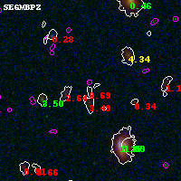 Black segments are analyzed here. Roll mouse over color images to view segments. Best viewed in a wide browser window (1200 pixels or more). Download SED & P(z) plots to view larger versions.
