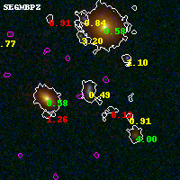 Black segments are analyzed here. Roll mouse over color images to view segments. Best viewed in a wide browser window (1200 pixels or more). Download SED & P(z) plots to view larger versions.