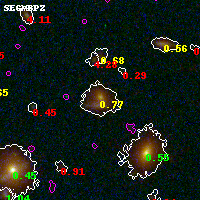 Black segments are analyzed here. Roll mouse over color images to view segments. Best viewed in a wide browser window (1200 pixels or more). Download SED & P(z) plots to view larger versions.