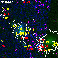 Black segments are analyzed here. Roll mouse over color images to view segments. Best viewed in a wide browser window (1200 pixels or more). Download SED & P(z) plots to view larger versions.