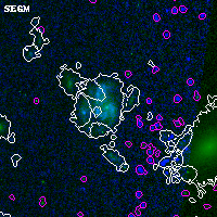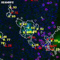 Black segments are analyzed here. Roll mouse over color images to view segments. Best viewed in a wide browser window (1200 pixels or more). Download SED & P(z) plots to view larger versions.