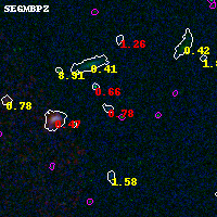 Black segments are analyzed here. Roll mouse over color images to view segments. Best viewed in a wide browser window (1200 pixels or more). Download SED & P(z) plots to view larger versions.