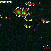 Black segments are analyzed here. Roll mouse over color images to view segments. Best viewed in a wide browser window (1200 pixels or more). Download SED & P(z) plots to view larger versions.