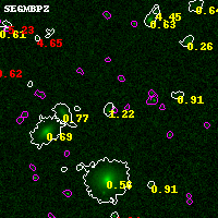 Black segments are analyzed here. Roll mouse over color images to view segments. Best viewed in a wide browser window (1200 pixels or more). Download SED & P(z) plots to view larger versions.