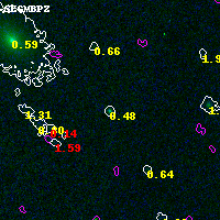 Black segments are analyzed here. Roll mouse over color images to view segments. Best viewed in a wide browser window (1200 pixels or more). Download SED & P(z) plots to view larger versions.