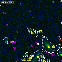 Black segments are analyzed here. Roll mouse over color images to view segments. Best viewed in a wide browser window (1200 pixels or more). Download SED & P(z) plots to view larger versions.