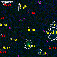 Black segments are analyzed here. Roll mouse over color images to view segments. Best viewed in a wide browser window (1200 pixels or more). Download SED & P(z) plots to view larger versions.