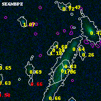 Black segments are analyzed here. Roll mouse over color images to view segments. Best viewed in a wide browser window (1200 pixels or more). Download SED & P(z) plots to view larger versions.
