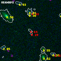 Black segments are analyzed here. Roll mouse over color images to view segments. Best viewed in a wide browser window (1200 pixels or more). Download SED & P(z) plots to view larger versions.