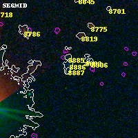 Black segments are analyzed here. Roll mouse over color images to view segments. Best viewed in a wide browser window (1200 pixels or more). Download SED & P(z) plots to view larger versions.