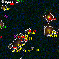 Black segments are analyzed here. Roll mouse over color images to view segments. Best viewed in a wide browser window (1200 pixels or more). Download SED & P(z) plots to view larger versions.