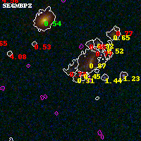 Black segments are analyzed here. Roll mouse over color images to view segments. Best viewed in a wide browser window (1200 pixels or more). Download SED & P(z) plots to view larger versions.