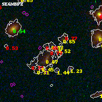 Black segments are analyzed here. Roll mouse over color images to view segments. Best viewed in a wide browser window (1200 pixels or more). Download SED & P(z) plots to view larger versions.