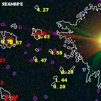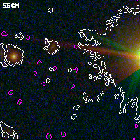 Black segments are analyzed here. Roll mouse over color images to view segments. Best viewed in a wide browser window (1200 pixels or more). Download SED & P(z) plots to view larger versions.