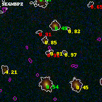 Black segments are analyzed here. Roll mouse over color images to view segments. Best viewed in a wide browser window (1200 pixels or more). Download SED & P(z) plots to view larger versions.