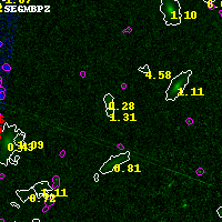 Black segments are analyzed here. Roll mouse over color images to view segments. Best viewed in a wide browser window (1200 pixels or more). Download SED & P(z) plots to view larger versions.